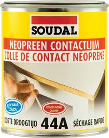 Soudal Contactlijm 44A is een onmisbare, sneldrogende lijm die practisch alles kleeft:kunststof bekledingsplaten en werkbladen op hout, metaal, board, ...