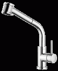 Cocoon ééngreepsmengkraan voor spoeltafel met beweegbare bek en uittrekbare handsproeier op uitloopbek van het kraanlichaam. Met duurzame onderhoudsvrije keramische schijven en 2 inschroefbare flexibels.