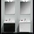Roxanne meubel ensemble bestaande uit: Onderbouw wit hoogglans / antraciet met 2 lades softclose greeploos, melamine Integrale tablet in kunstmarmer met rechthoekig wasbekken wit.. Spiegel 600x760x20mm Verlichting IP44 halogeen lamp.
