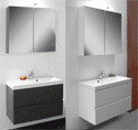 Roxanne meubel ensemble bestaande uit: Onderbouw wit hoogglans / antraciet met 2 lades softclose greeploos, melamine Integrale tablet in kunstmarmer met rechthoekig wasbekken wit.. Spiegelkast 600x730x155mm met 2 deuren Verlichting IP44 halogeen lamp.